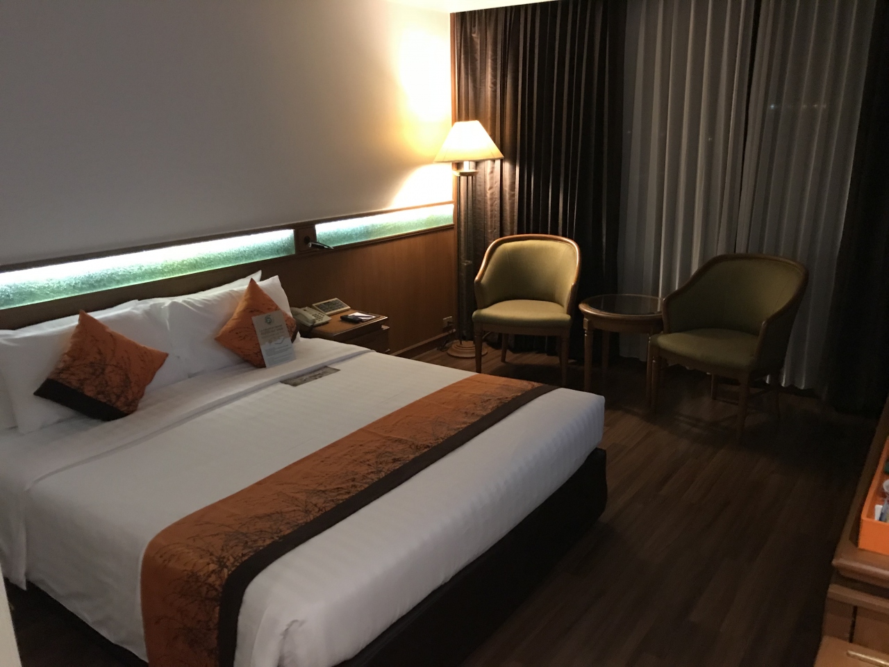2回ともネットでホテルHPへ直接予約しました。ダブルベッドで2200~2700THB程度、1万円以内としてはそこそこいい感じのレベルです中心部で鉄道駅にも近く便利。また、ホテル正面には日系のお店もたくさんあります。受付対応ヨシ。部屋広い。多少古さは有りますが、妥協の範囲かと。