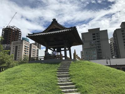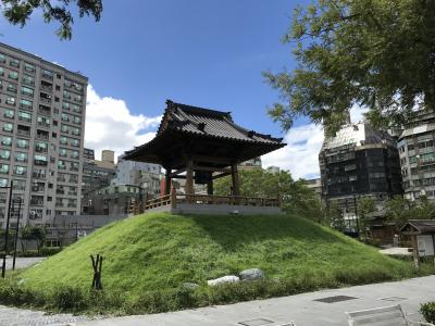 西本願寺、台湾別院跡。明治時代にたてられたそうですが、寺はありません(40年ほど前に焼失したそうです)が復元された鐘があります。史跡公園として整備されており、輪番所はおしゃれなカフェになってます。地下鉄の西門町駅からすぐ。賑わいにつかれたらここで一息。