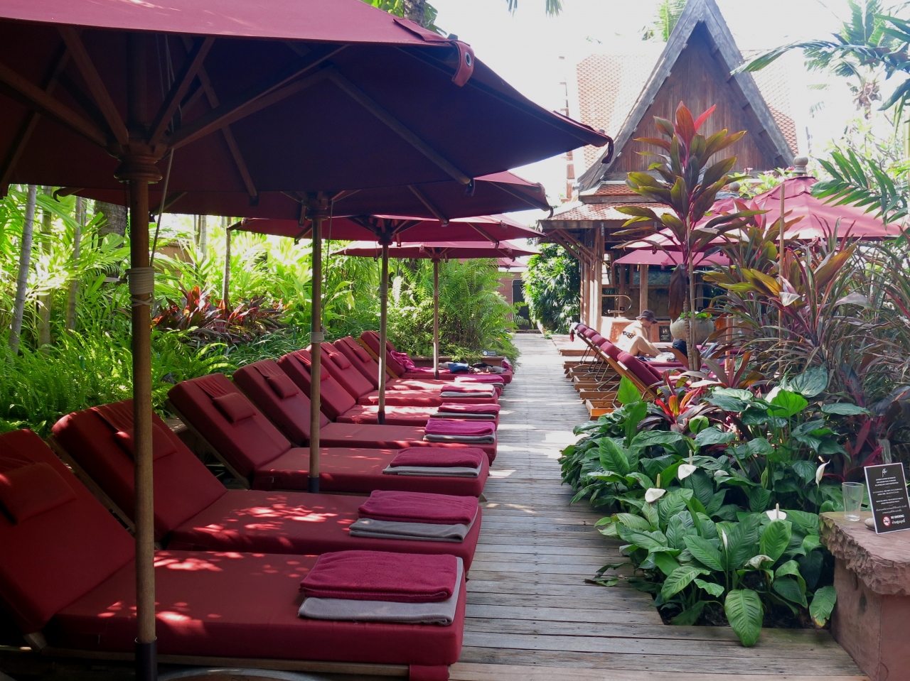 曜日によってかなり混雑するため、プールサイドのチェアに