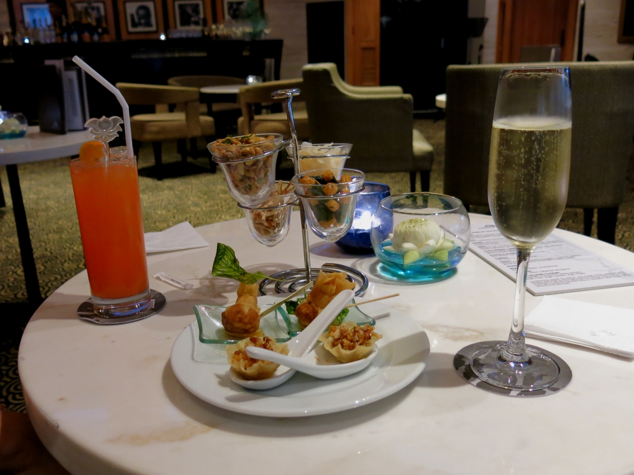 カクテルタイムのラウンジの食べ物