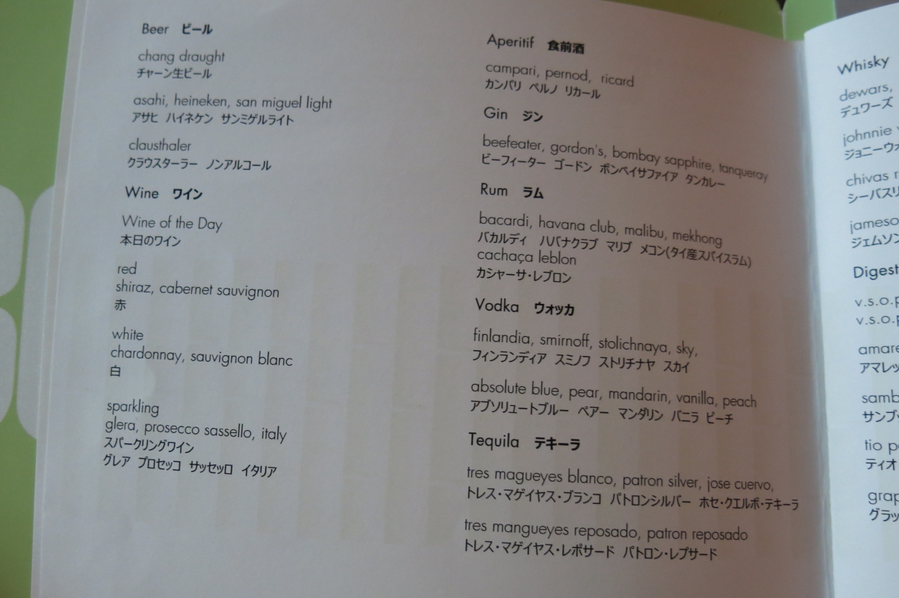 ・ワイン赤白各2種、スパークリングワイン、スピリッツ