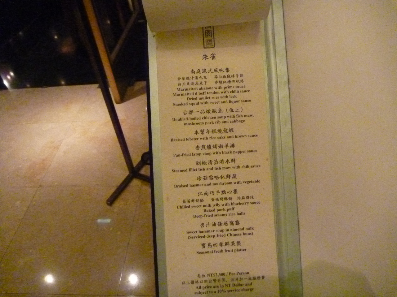 ルームキー提示で、レストランのディナーコースが10%引きになりました。- 旅行時期
