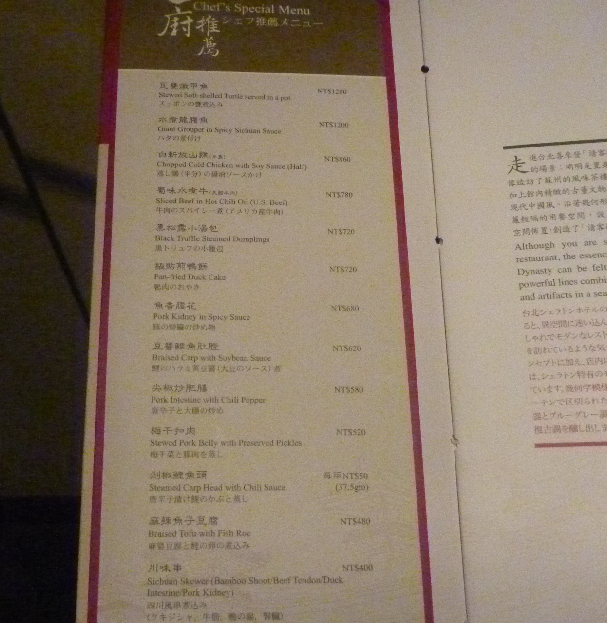 お店のホームページに写真付きの日本語のメニューがあります。- 旅行時期