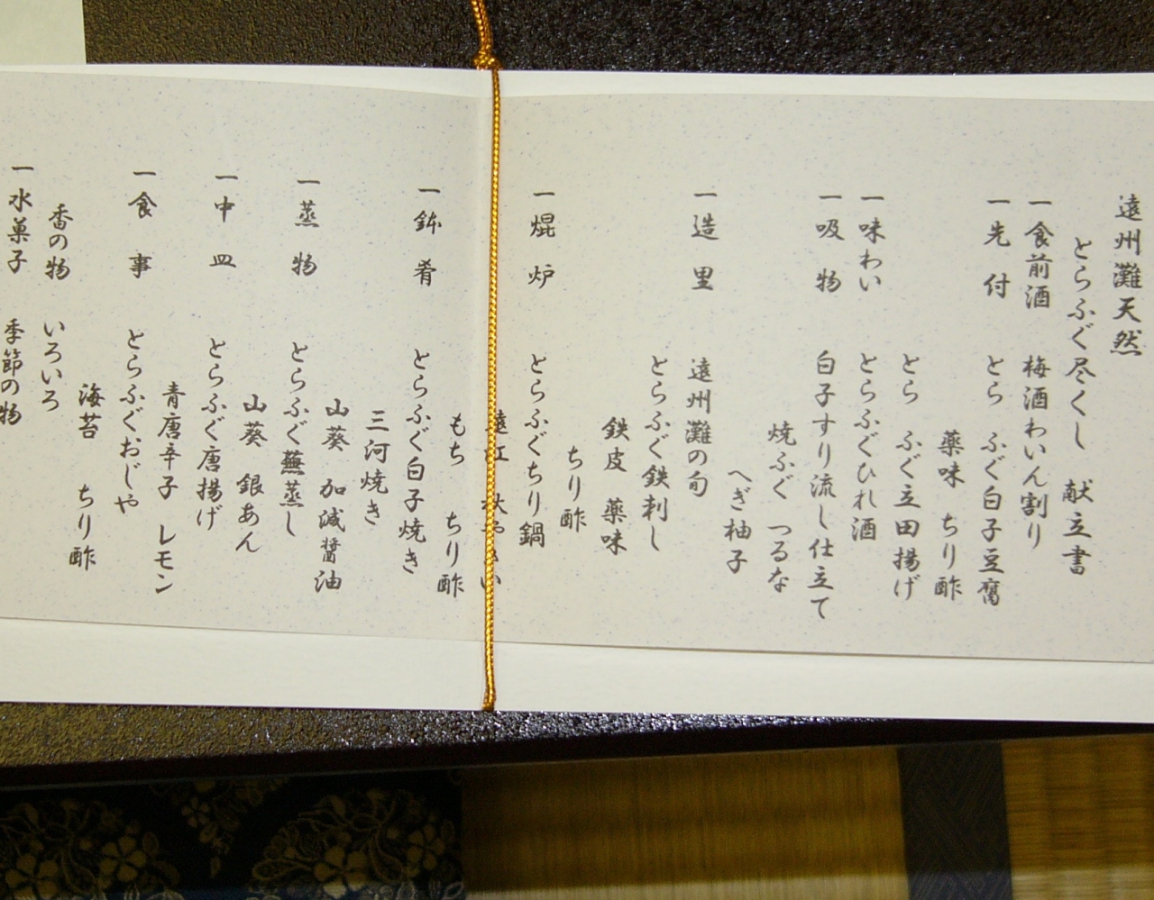 遠州灘天然とらふぐ尽くしのコースで泊りました。