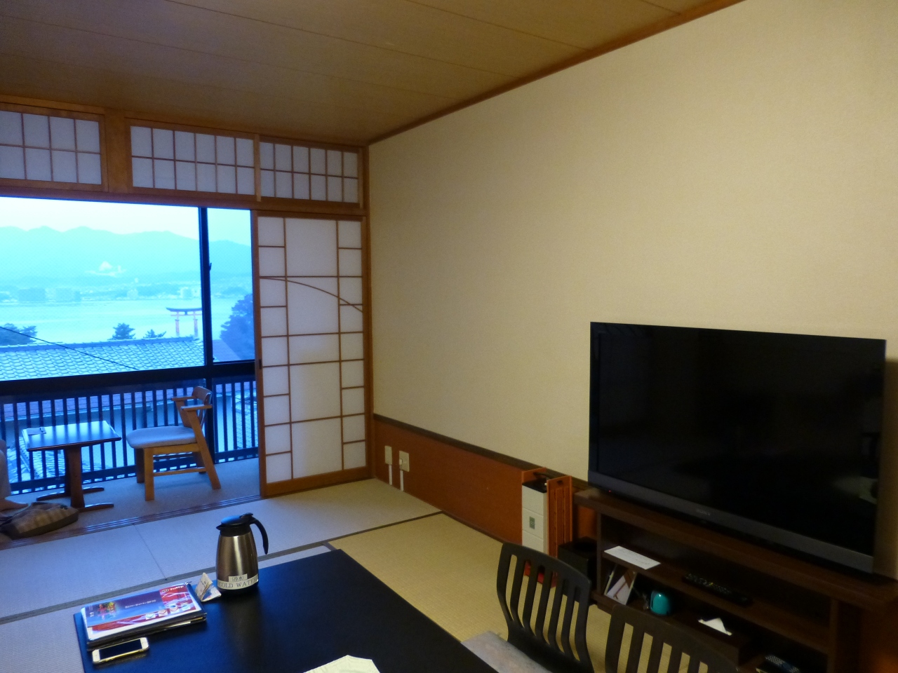 12.5畳の和室を予約したのですが、4人だったためか、端の広い和洋室にランクアップしていただきました。あいにくの雨でしたが、浜名湖が見えます。部屋は満足でしたが、到着時だれも出迎えに来ないなど、あれっと思うことが少々ありました。