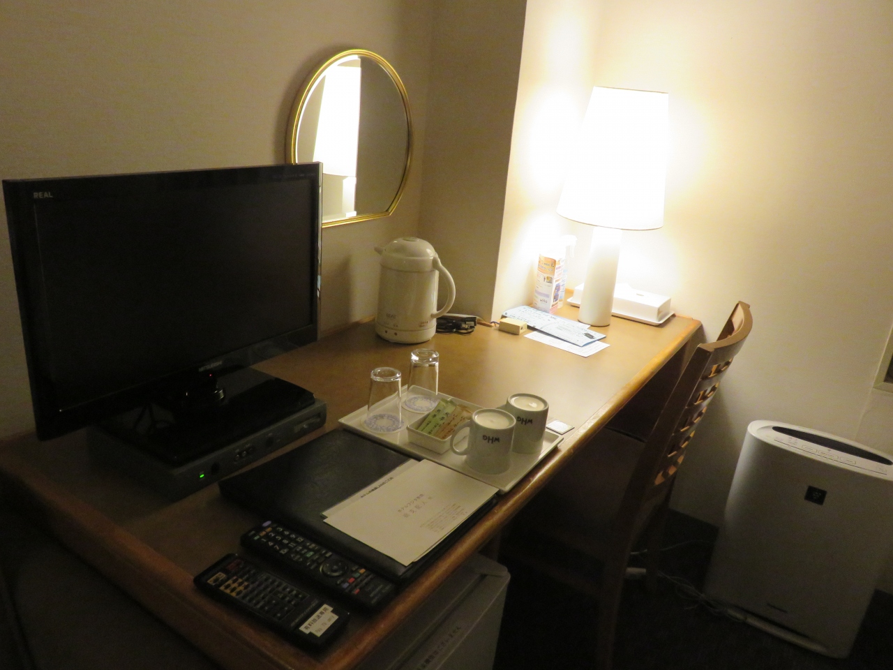ただ湯沸かしポットがないのと、コップがペコペコのプラスチック製なのが残念。