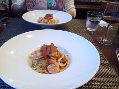 JRとバスを乗り継いで、妻と夕食にイタリアンのお店にきました。