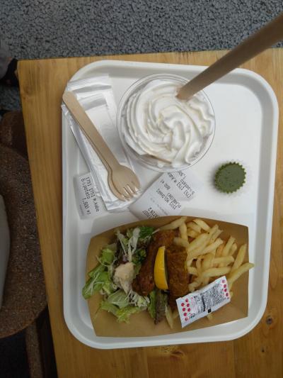 大屋根リングの外側のフードコートパキスタン料理のお店でマトンカバブとミ...