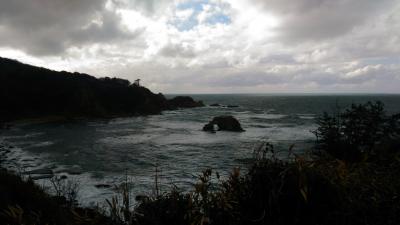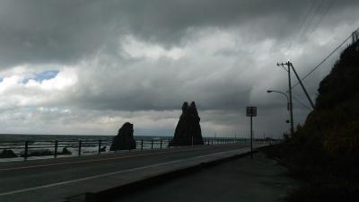 鳴き砂の砂浜。砂が乾いてないと音が鳴らないらしく、雨のため砂の声は体験できませんでした。