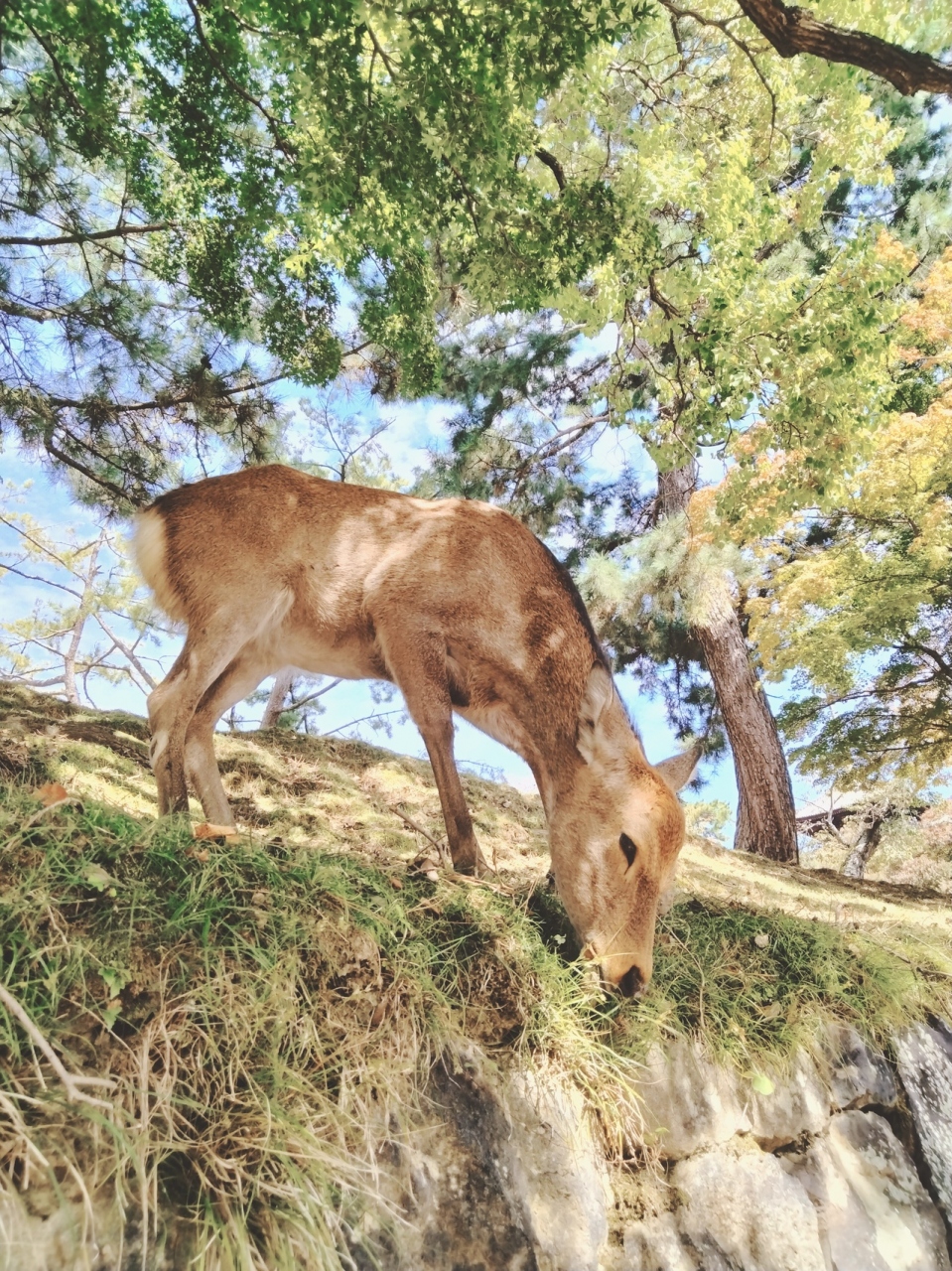 吉城園のお隣にある日本庭園です。東大寺や春日山の景色を借景とした、見事な庭でした。入場料が1200円と少しお高めですが、団体客で賑わう奈良公園や東大寺に比べて人が少なく、ゆっくりと観光できるのは良かったです。