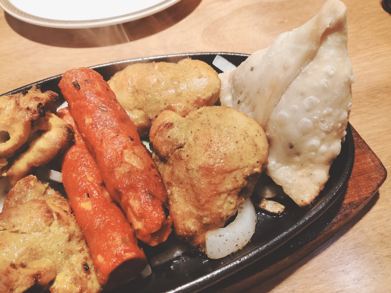 友人と二人でディナータイムに行き、カップルセットを頼んでお腹いっぱい食べました!カレー2種類にナンとライスとサラダ、鉄板に乗ったチキンやサモサなどが付くボリューム満点なセットです。ナンは薄めのタイプでした。満腹のところにラッシーとアイスが登場しましたが、なぜか美味しく食べられてしまうのが不思議です。