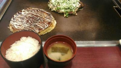 ランチセットをいただきました。もちろん、お好み焼きにごはんとみそ汁が付いてくる大阪スタイルです。一見ヘビーそうにみえて、お好み焼きには卵やヤマイモ、キャベツがたっぷり入ってふわっとしており、意外とごはんに合うんです。