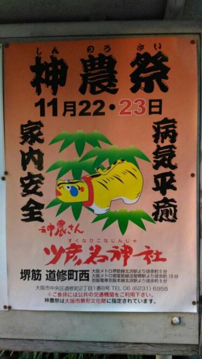御堂筋を歩いていると、奉納提灯と虎の張り子が飾ってありました。道沿いの提灯をずっと辿っていくと少彦名神社にたどりつき、もうすぐ神農祭であることがわかりました。今年は出店などは無いそうですが、たくさんの献灯や飾りがあり、多くの人が疫病退散を願うお祭りです。