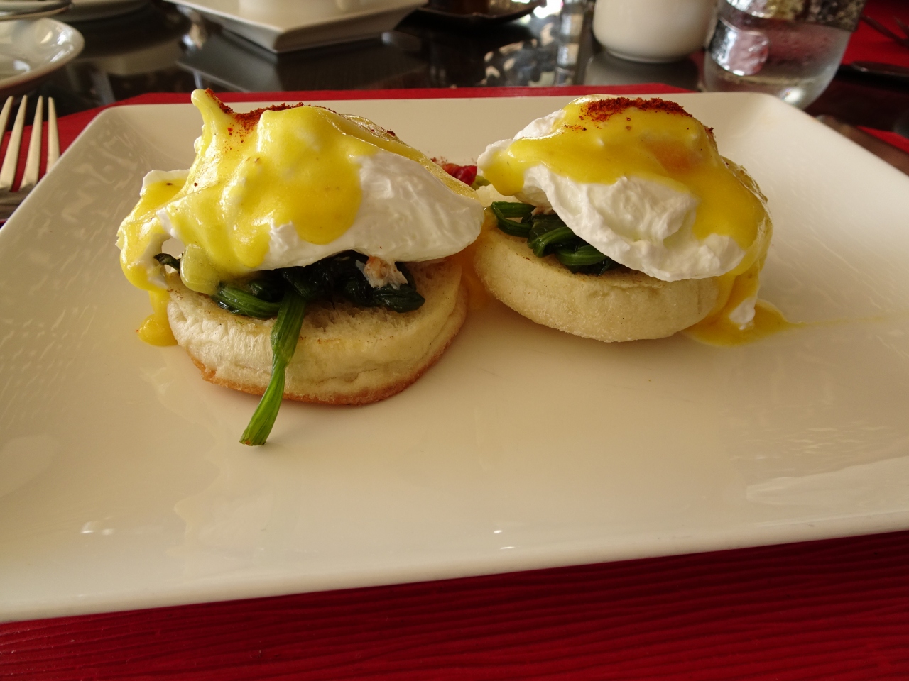 最初にジュースを持ってきましたが、別料金なのか不明でもらいませんでした。料理を注文した後は持ってきませんでした。料金は割高ですが、雰囲気はいいし、落ち着いて朝食が食べれるのはよかったです。