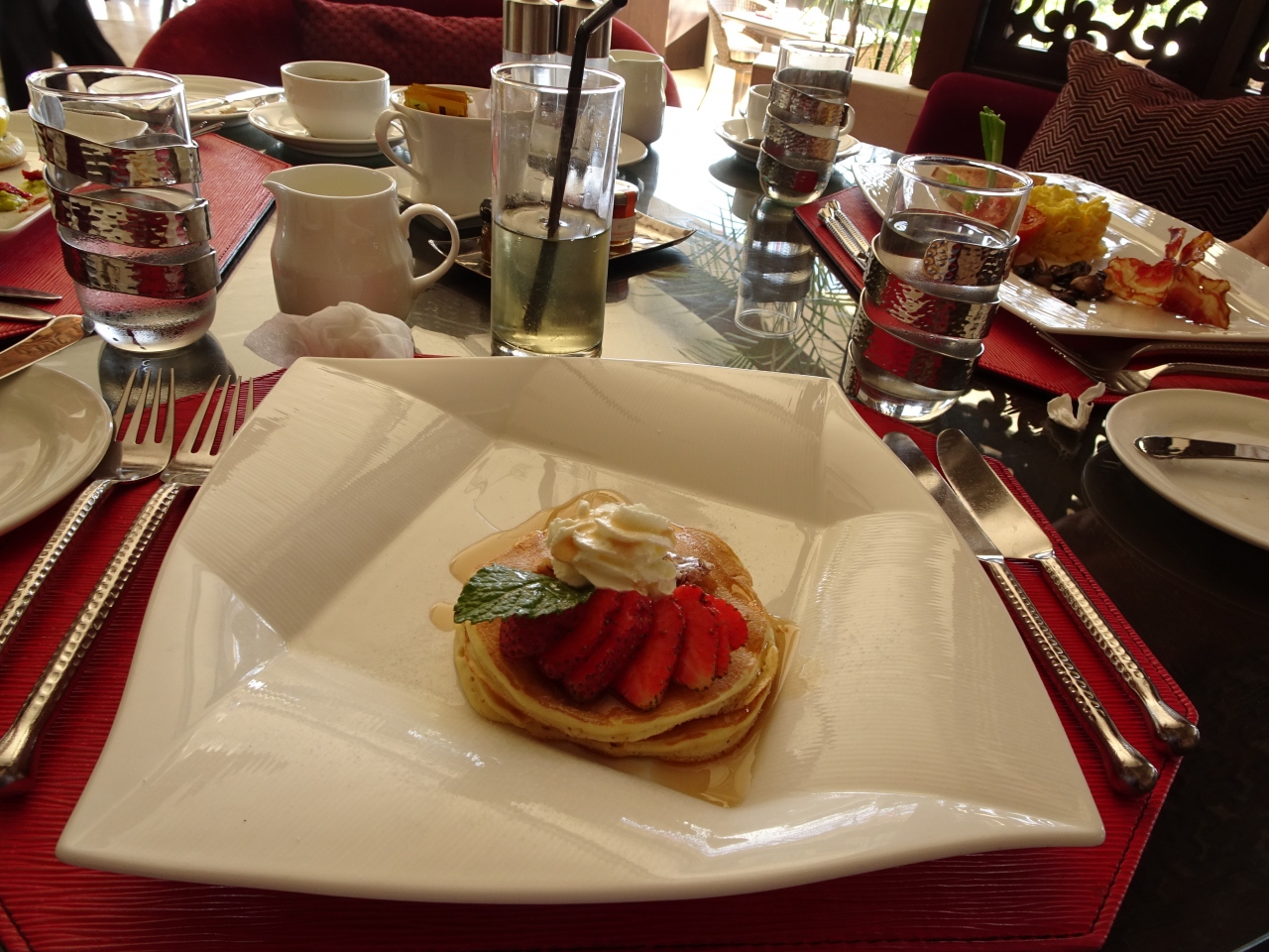アヤナ宿泊で朝食をつけていなかったので、アラカルトでヴィラエリアにあるこちらのレストランへ。朝食がついている場合は追加料金でアラカルトを食べるようです。オープンになっていますが、メインの朝食ビュッフェよりも人数も少なく落ち着いた雰囲気でよかったです。