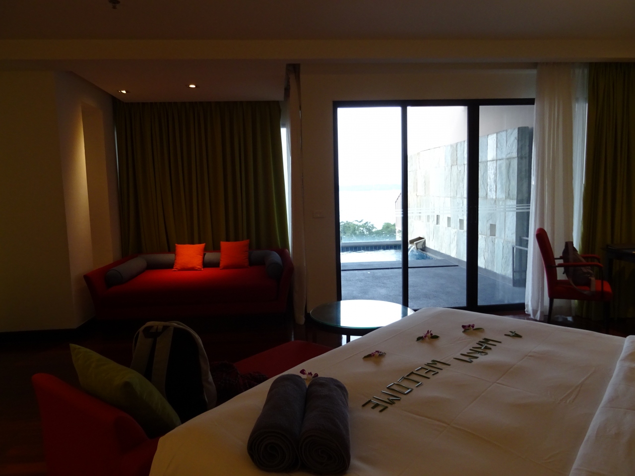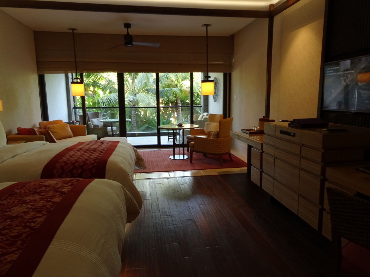 クリスマス前に2泊しました。プールつきキングベッドの部屋を予約。ホテルは傾斜が激しい斜面に3階建てぐらいのマンションのように各棟があり、上の方が良いお部屋。部屋に行くにはバギーで送ってもらわないと辛い。棟は斜面になっていてエレベーターがないので階段の上り下りがきついので、高齢者向きではないです。部屋にはプールがあって気持ちいい。でも、泳ぐようなプールではなく、足をつけたりするぐらい。