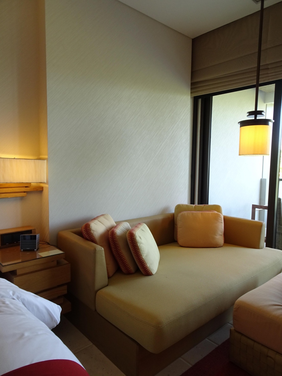 広いベッドのほかにかなり広いデイベッドも。広さは十分で眠れる。ただ、エキストラベッド扱いであれば追加の毛布の用意があるじゃないのかなと思いました。