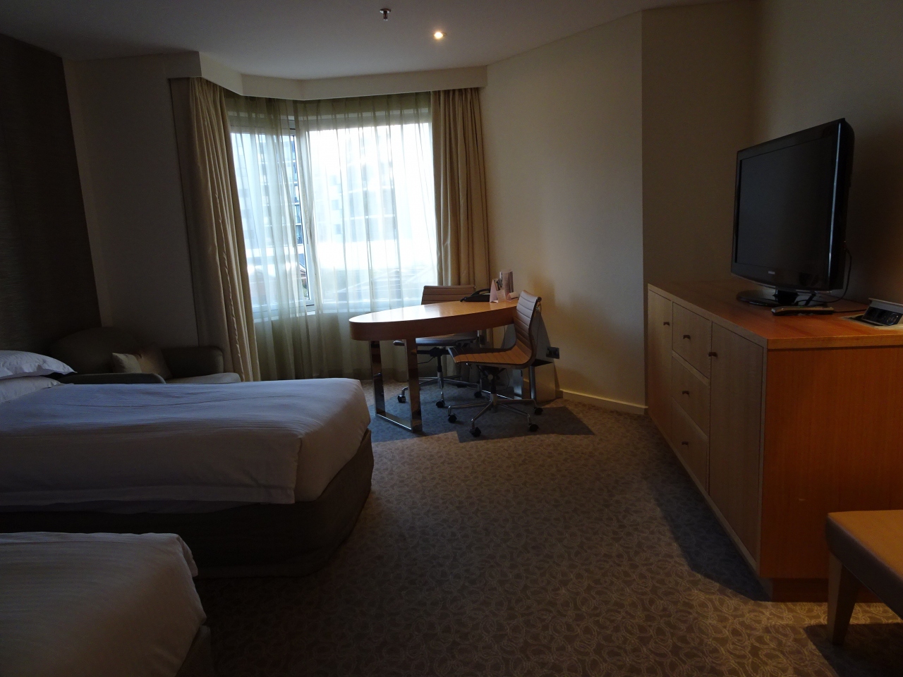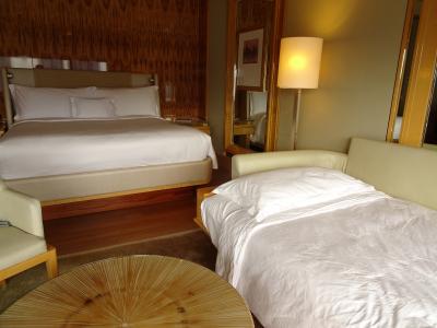 部屋指定なしだったので3階でプールが見える側。キングベッド希望だったのにツイン。子供用に後からエクストラベッドをつけてもらったが、手間がかかった(無料)。スリッパはおいてなくてリクエスト。部屋は想像よりも狭く、バスルームはハンドシャワーのなしのシャワーとバスタブが一緒のタイプ。水回りも部屋もかなり年季が入っている。トイレの水を流すとものすごい勢いで水が流れるので、音がうるさい(なのに流れない)。アメニティはレモンの香りがさわやか。オーストラリアのかと思ったらアメリカのメーカー(;'∀')