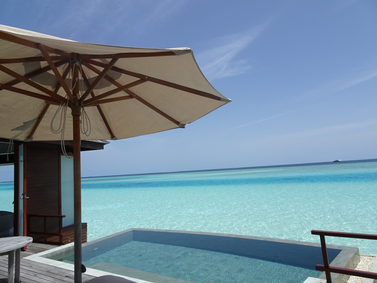 2018年6月に宿泊。HP直も考えたが、2月に〇I〇を通じて予約(スピードボート代、宿泊費など比較したら最安だったため)。目の前がビーチのサンセットビーチヴィラに2泊、サンセット水上コテージに2泊、ハーフボードで予約(この時期はもれなくハーフボードになった)。マレの空港を出てすぐにアナンタラ専用エリアがあり、高級スピードボートでリゾートまで。