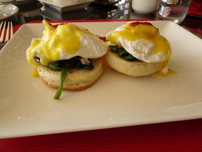そして、朝食もついていて、まえもって注文書をドアにかけておくと、翌朝隣のカキアンベーカリーで食べられた。オムレツなど卵系はとってもおいしい。パンは多すぎるぐらい出てくる。