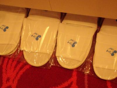 でも、子供がテレビで見て、このホテルに泊まってみたいというのでこちらに。結果、大正解でした。ホテルに入るとロビーにディズニーのデコレーション、夜は庭でチェシャ猫などがライトアップされていて、これだけでテンションがあがります。エレベーターに乗るとミッキーの声で案内があったり、部屋のスリッパもミッキーがついてたり、お部屋の壁の絵もかわいい。加湿器、パジャマもありました(荷物が減るので助かる)。