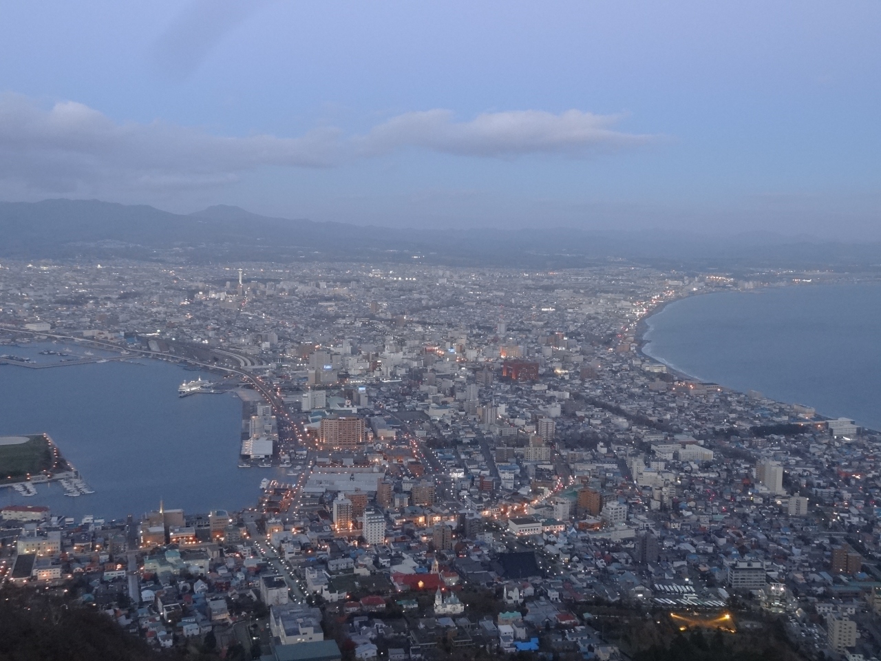 函館に行ってきたと言うと、絶対聞かれるのが「夜景見ましたか?」でした。ここは絶対外せないスポットです。日没の時間(訪問時は4時半)よりかなり早くロープウェイで登り、徐々に夜景になる様子を見ました。ちょっと寒かったですが、少しずつ灯りが灯っていく様子が見られてよかったです。