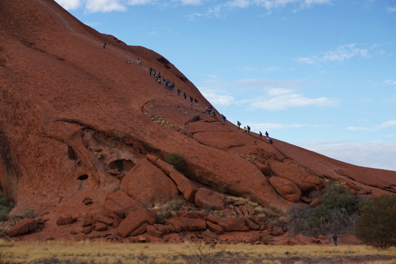 最近は登頂する人の割合が減っているそうですが、日本人はほとんど登頂する、神道に関係があるのかもしれないと英語ガイドさんが話していました…。登山を選ぶとひたすら登るだけになってしまうため、ウルルのいろいろな姿を見たり、文化的な話を聞くにはふもとめぐりをするのがいいです。- 旅行時期