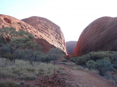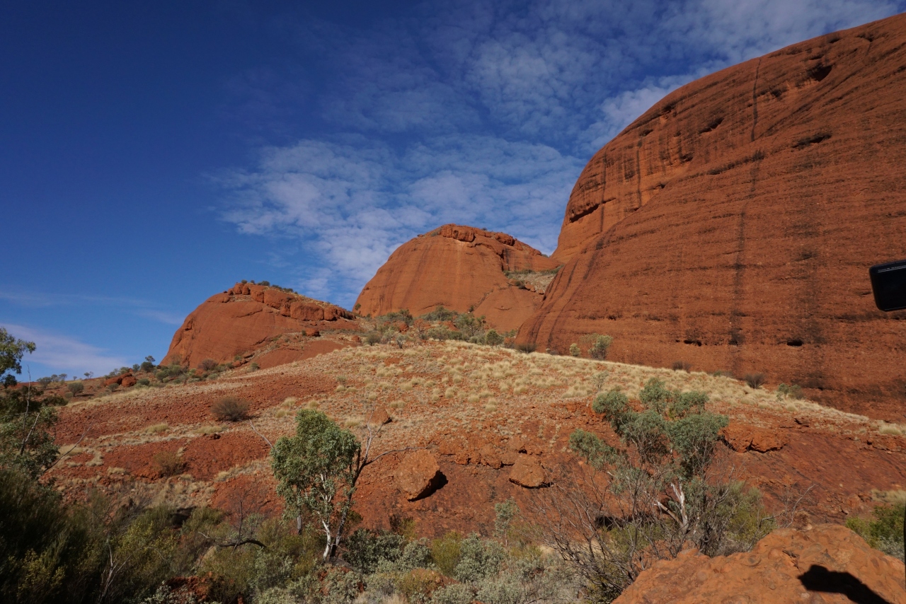 カタジュタはウルルよりも巨大な岩が36個もあるというスポットです。ウルルのサンセットツアーで行くのはこの一部で、そちらにするか迷いましたが、せっかくエアーズロックリゾートで2泊することにしたので、風の谷ツアーに行くことにしました。英語ツアーにしましたが、ほとんど歩くだけなので特に問題はありませんでした。