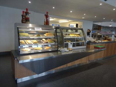 中にカフェもありますが、パイ、ホットドッグなど普通の軽食のみです。