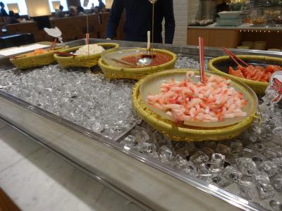 夕食のバイキングは2Fの会場で、寿司をにぎってもらったり、ステーキを焼いていたり、天ぷらをその場で上げていたりと内容はよかったです。デザートも充実していました。夕食時間が遅かったこともあり、あまり混雑もしていませんでした。