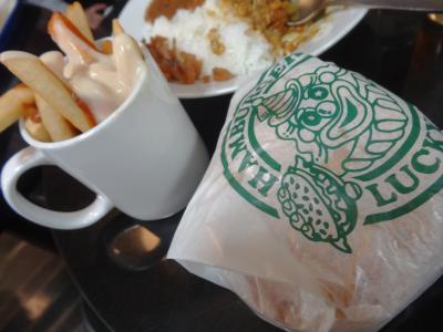 遅いランチ(1時半ごろ)だったので、席も空いていてすぐに入れました。よくわからないまま、チャイニーズバーガーのセットを二つとオリジナルカレーとオニオンリングを頼みました。セットってドリンクとポテトだよね~と甘く考えていたら、こちらのポテトは大量でチーズがかかってるものでした。大人2人と小学生低学年1人では食べきれず、頑張りましたがポテトは残しました(>_<)