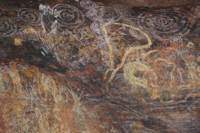 バスから降りてウルルに近づき、アナング族の神話や生活の様子、ウルルの成り立ちなどについて説明があり、絵が描かれているところや水場(このときは干上がっていました)などを見学し、最後にカルチャラル・センターに寄りました。説明をちゃんと聞きたい場合は日本語ツアーがいいかもしれません。
