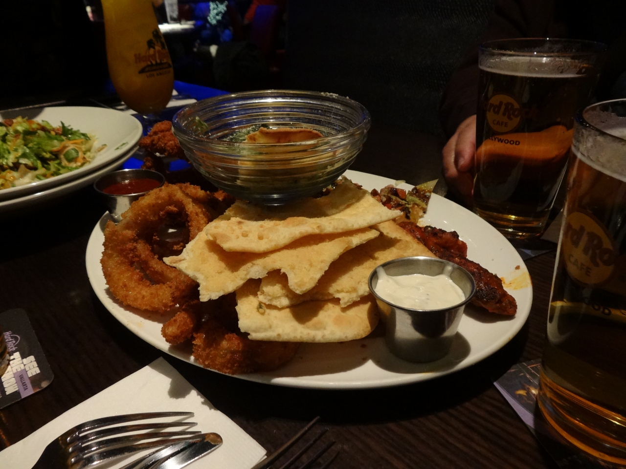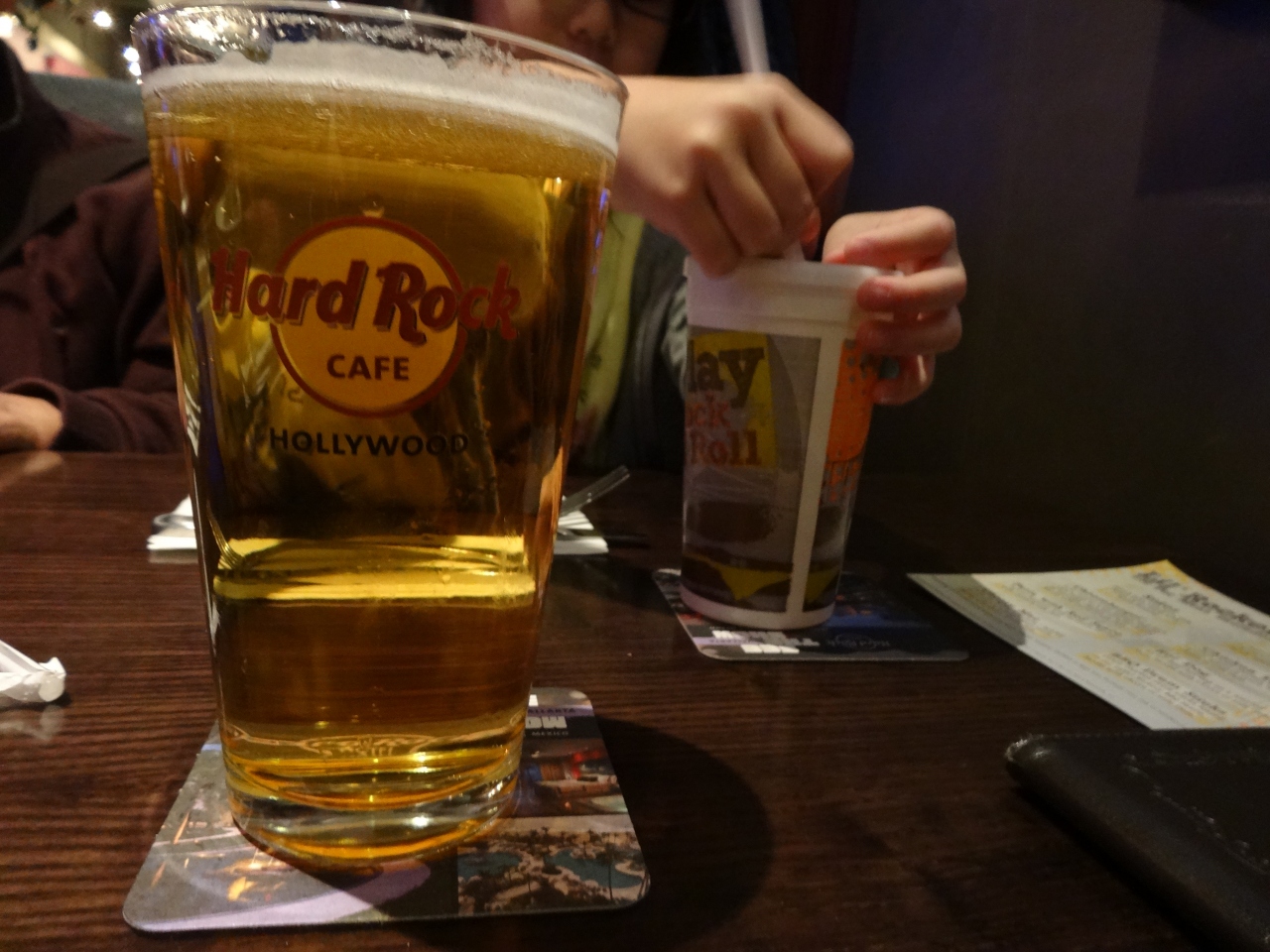 早めに夕食を食べようと、ホテル近くのハードロックカフェに行きましたが、早い時間なのに混んでいて、30分ほど待たされました。
