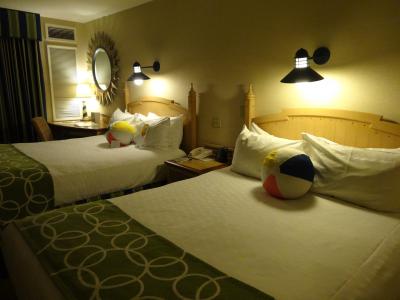 年末に3泊しました。他の2つのディズニーホテルに比べると、こじんまりとしていてカジュアルなホテルです。パークには徒歩10分~15分ぐらい。ホテルのプールからは花火が見るということでしたが、残念ながら到着日は風のため中止でした。