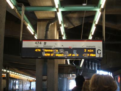 地下鉄スルッセン駅前のバス停からバスに乗ります。このバス停が地下にある...
