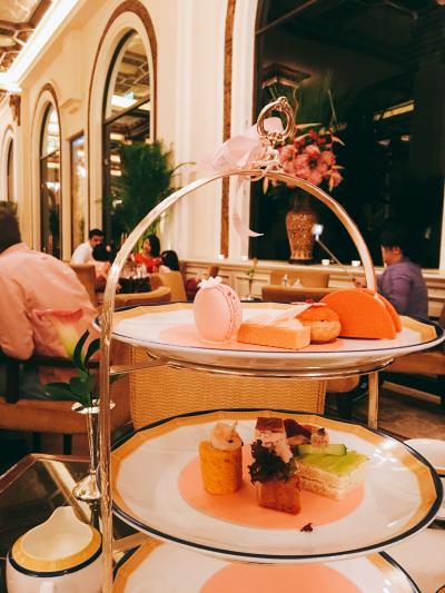 母の米寿のお祝いにペニンシュラに宿泊したので、ザ・ロビーのアフタヌーンティーの予約ができました。アフタヌーンティーは14時からのようです。母は食が細いので一人前を2人でシェアしたいとお願いし、別に紅茶をひとつ注文しました。今はピンクリボン活動とコラボしたピンクのスイーツが出てきました。
