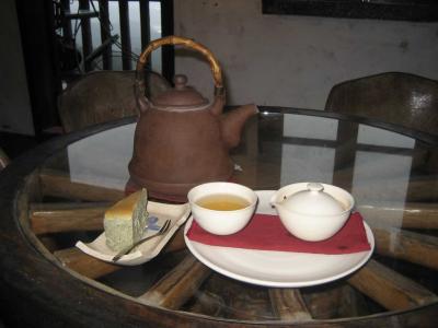 デザートは、烏龍茶葉入りのチーズケーキ。