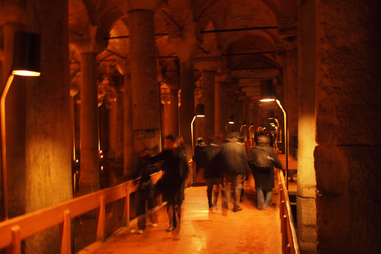 ギリシア人団体客がいて混んでいましたが、赤い光に照らされた貯水池はとてもきれいでした。魚も住んでいます。奥にはメデューサの首もあります。喫茶店もあります。民族衣装を着て記念写真コーナーもありました。写真はちょっと難しいです・・・・(暗いので)