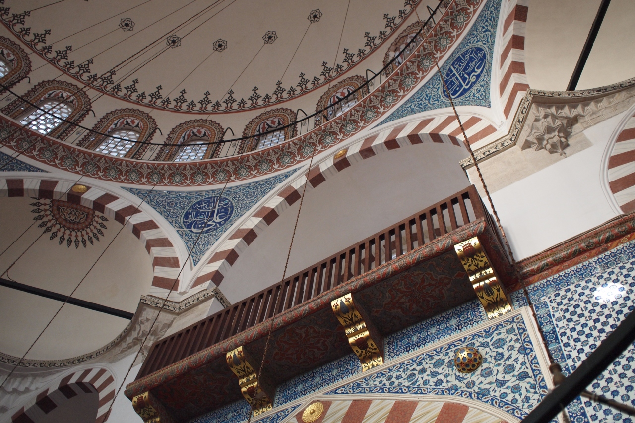 大きくて美しいジャミィ。外から見ても迫力あります。入り口を入ると中に商店街がありこれも楽しい。こんにちは!と声をかけられてそちらを見ると、店員さんが恥ずかしがって隠れてしまうという、イスタンブルでは見られないようなシャイな場面も。そして内部は高くて美しい天井が必見。中の高いところにも登れます。そこがちょっとせまいのがまたよい。