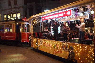 ここは路線は短いけど、便利です。そして、可愛いです。夜は電飾してます。そして、音楽サービスやっていました。ミュージシャンのショーというかステージを載せて走っていました。いつものことなのかどうかはちょっと分かりません。楽しかったです。