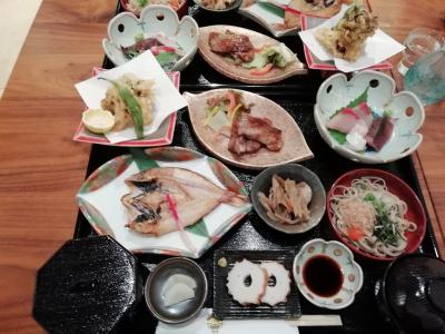 一泊二食プラン。フロントのスタッフさんもレストランのスタッフさんも丁寧で明るくて、すごく感じが良かったです。ホテルはとてもきれいでした。マッサージチェア付きのプレミアムルームにアップグレードしてくださいました。大浴場もあります(人工温泉)。ビジネスホテルだから、と期待していなかったのに、島根の名産をふんだんに使ったおいしい夕食と朝食でした。GoTo割もあって、二人で駐車場料金550円込みで一万円を切るお値段でした。夫は歯ブラシが他と比べて柔らかくて質が良かったと喜んでいました。コンビニも近くにあるのでちょっと買い物にも便利。