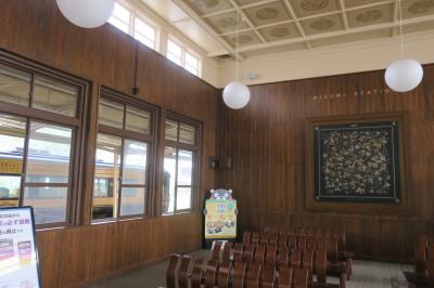 とてもおしゃれな駅舎でした。中も外もきれいです。くまモンフォトスポットもあります。待合も広い。ICカード利用で乗ることはできないみたいでした。現金で券売機で切符を買うか、駅員さんから切符を買って乗ります。改札の機械?もなかったです。
