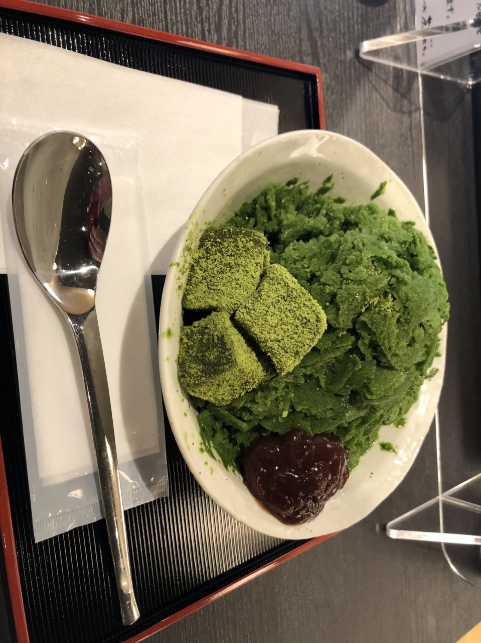 おいしい抹茶のデザートいろいろいただきました、その中でも抹茶クリームあんみつはとても美味しくてお勧めします