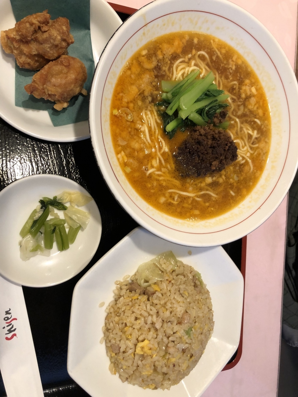 ディナーの時に行きました、坦々麺ハーフチャーハンセット1190円でした。エビチリワンタンセットが1190円でした。サービスで杏仁豆腐が唐揚げを選ぶことができました。当然唐揚げにしました(笑(。とてもおいしかったです。コロナ対策でえーとを3回行った人の住所等が書く必要がありました。