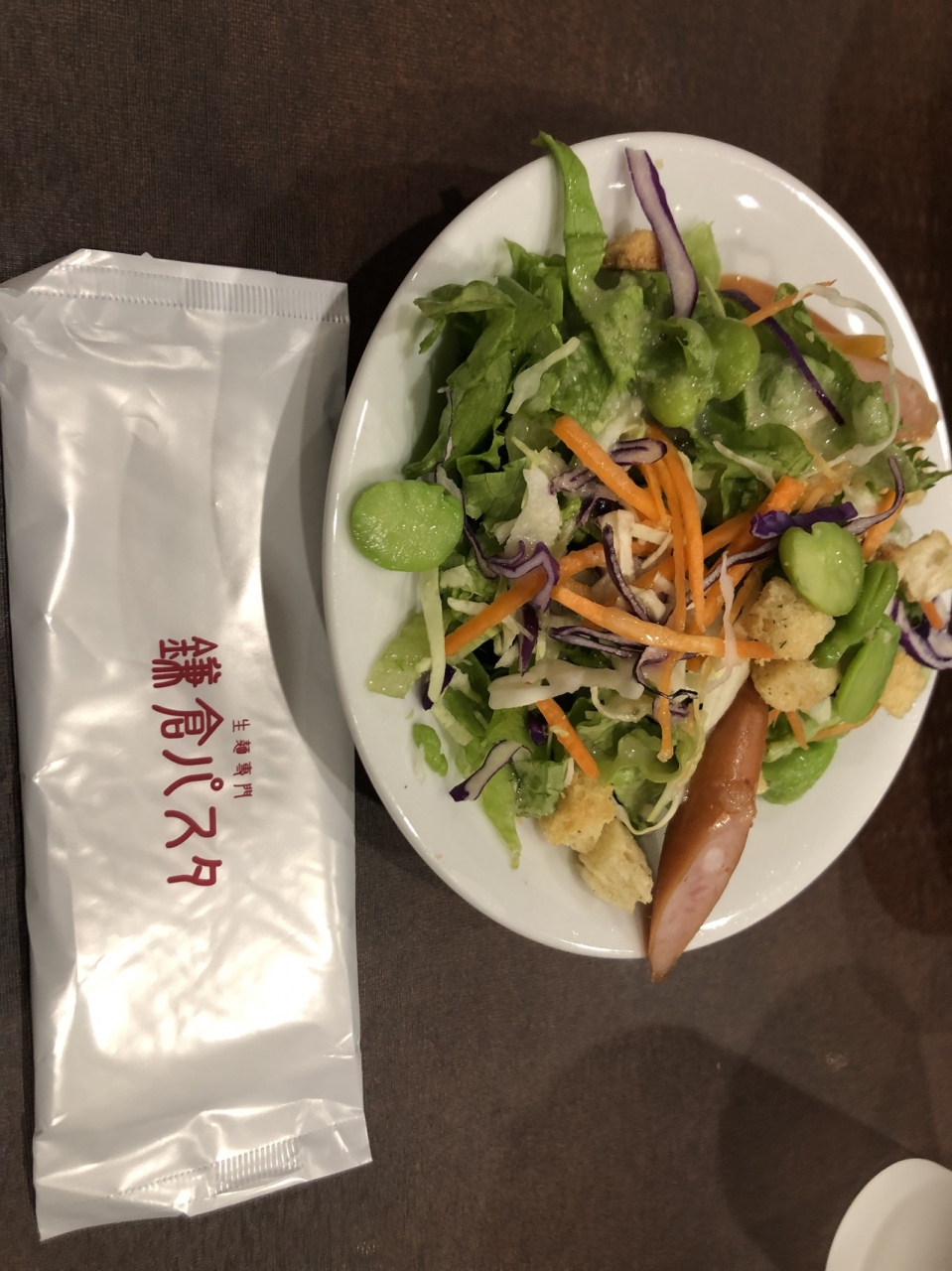 ディナーに行きました、パスタを注文して、サラダセットは必ずついていました。パスタはモニモニモチモチとしていて大変おいしかったです。お箸使っているので、使いやすいです。パン食べ放題はディナーにもあってよかったです。ランチとディナーは同じ金額だったので大変助かりました。また行きたいと思います