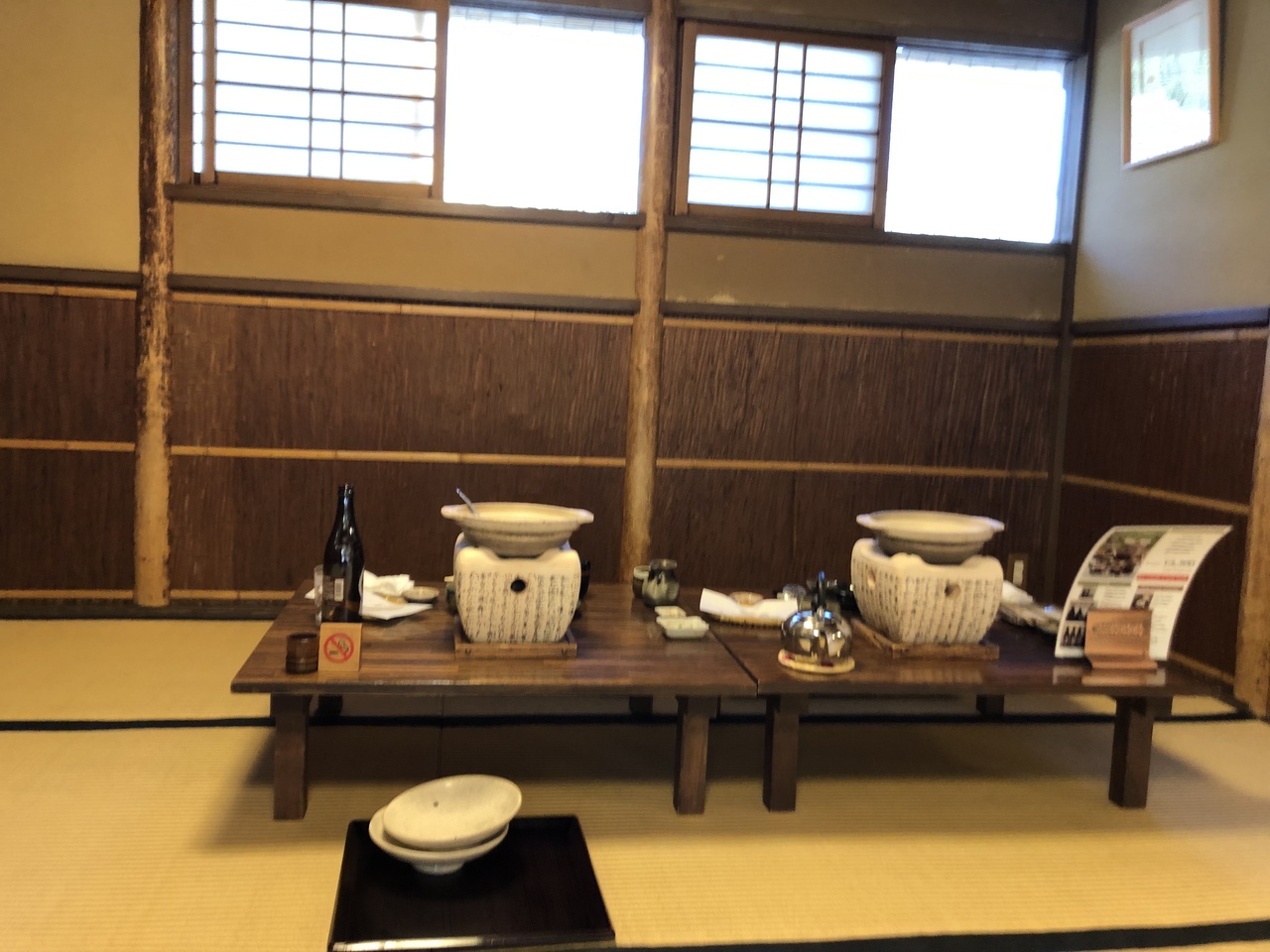 ランチに行きまして、一人当たり3300円でした。湯豆腐、昨日メール連絡、小人天ぷら、ごま豆腐、とろろ汁、ご飯のセットで大変満足でした