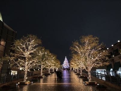 イルミーネションをみにいきました、駅からとても近く、雨の日でも屋根付きのルートがあって、助かりました。お庭にクリスマスツリーがとても綺麗で、輝いていまいた。さらに両側の木も飾られていて、素敵でした、ぜひお勧めします。