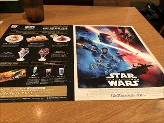 スターウォーズ公開にあわせて、限定カフェが開催していました。暗黒パスタを注文し、1500円ととてももちもちして美味しかったです。ダークサイドソイチャコールパフェもいただいて、1200円とラズベリーのアイスが美味しかったです。イベントある時にいくのはお勧めします。