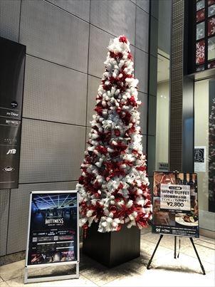 12月にいったので、ちょうどクリスマスの時期で、入口にはクリスマスツリーが飾っていました。ソムリエ厳選のワインビュフェにいきました。100種類ワインの飲み放題で2800円と大変おとくでした。