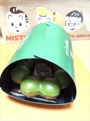 ミストーと宇治抹茶のコーラボレーションをやっていたので、新しいドーナツを見あてにいきました。ポン・デ・宇治マチャ&ショコラクリームのドーナツは、抹茶の風味とドーなーつがとてもマッチしていて、ほの良い甘さでお勧めです。